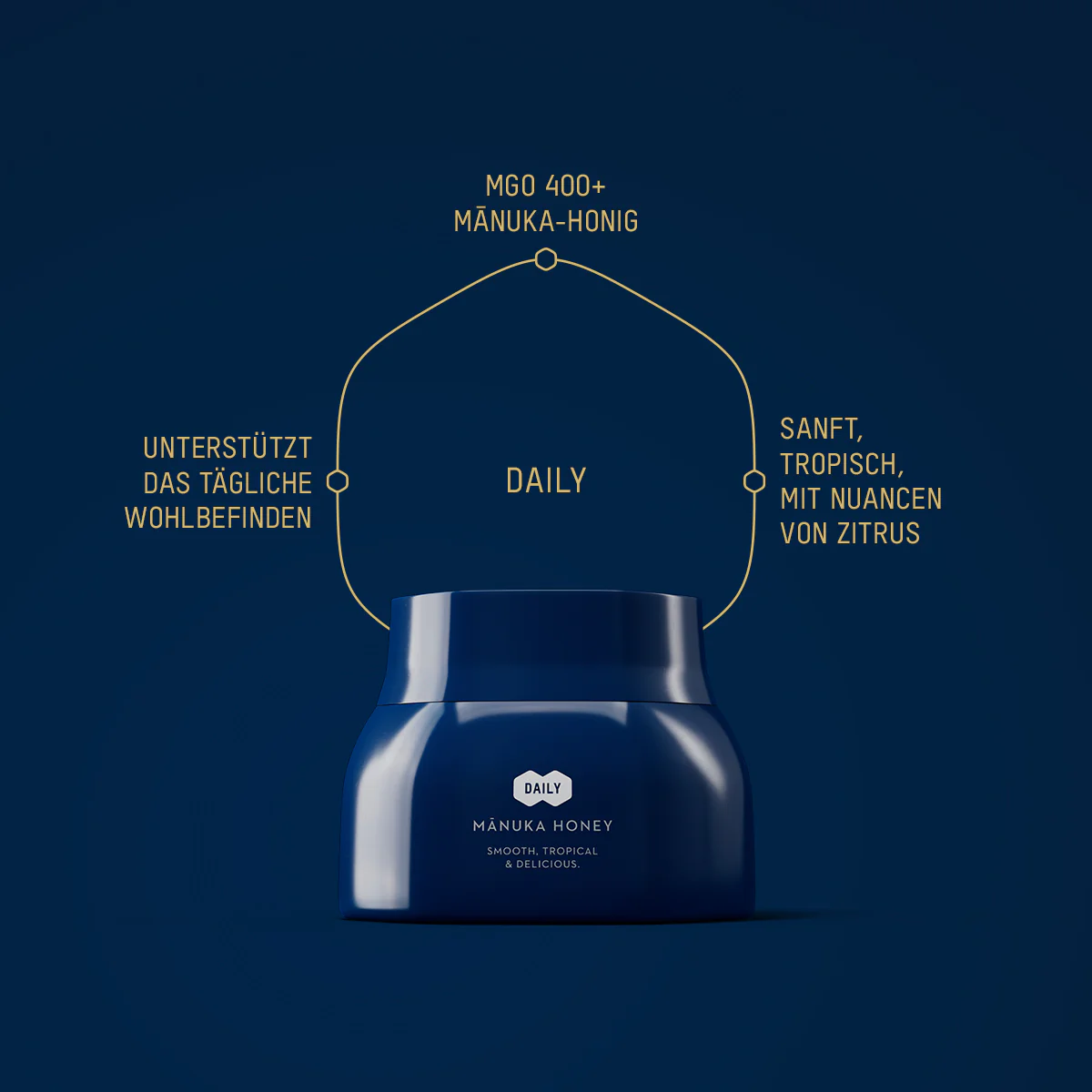 Mit reinem Mānuka-Honig höchster Qualität, dem Lebenselixier der Bienen, und einem goldenen Löffel in limitierter Auflage, mit dem man ihn genießen kann. Teile die cremige Textur des Mānuka-Honigs, seinen einzigartigen Geschmack und seine zahlreichen wohltuenden Eigenschaften mit deinen Liebsten.