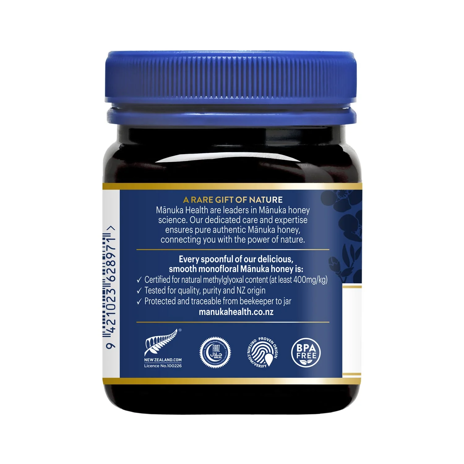 Der kostbare MGO 400+ Mānuka Honig von Manuka Health ist der beliebteste unter den original MGO Manuka Honigen aus Neuseeland und ist zertifiziert für eine natürliche Methylglyoxal-Qualität (MGO) von mindestens 400 mg Methylglyoxal pro Kilogramm Honig - der wissenschaftlich nachgewiesene wichtigste natürliche Bestandteil in Manuka Honig.